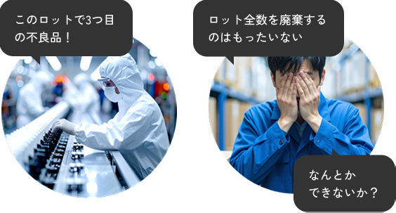 特定の製造ロットで僅かでも不良品・欠陥品が検出された際、そのロットで製造された製品を全て廃棄せざるを得ず、本来は廃棄する必要のない多くの製品が廃却されているという課題があります。