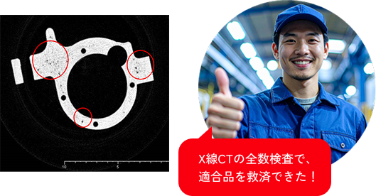 不良品が検出されたロットを対象とした産業用X線CTによる全数非破壊検査を実施し、出荷適合品の救済をサポートします。