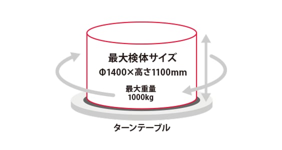 日立ハイテクのX線CT装置は、国内最大級のΦ1400mm x 高さ1100mmの広い撮像視野を実現。