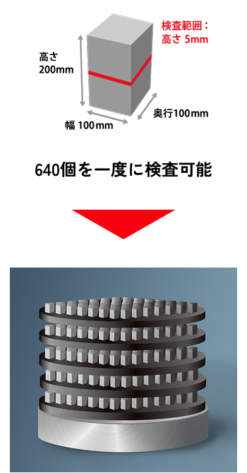 1回の検査で大量※の製品(検体)の内部構造観察が可能。