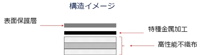この電磁波吸収シートは、緻密で均一なポリエステル高機能不織布に特殊な金属加工を施すことで電磁波を吸収します。