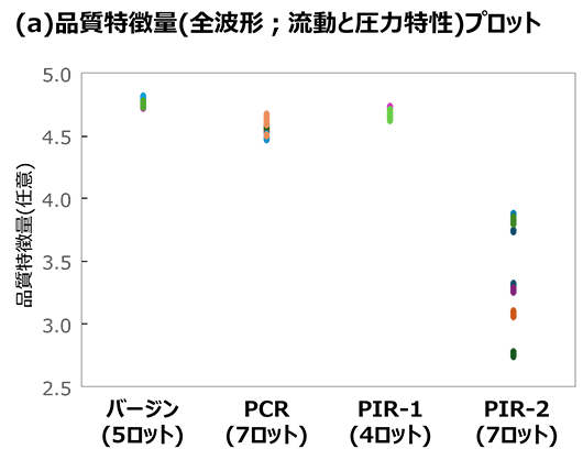 図3;バージンPPとリサイクルPPのロットばらつきの評価結果