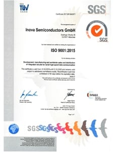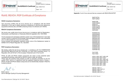 Inova社はISO9001:2015の取得やRoHS/REACH規制の順守によって国際的な規格を満たしています。