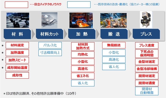 日立ハイテクが開発した量産技術、専用装置に加えて、材料、シミュレーション、試作、評価までアルミホットスタンプの生産に必要なトータルエンジニアリングを生産者様へサービスとして提供致します。