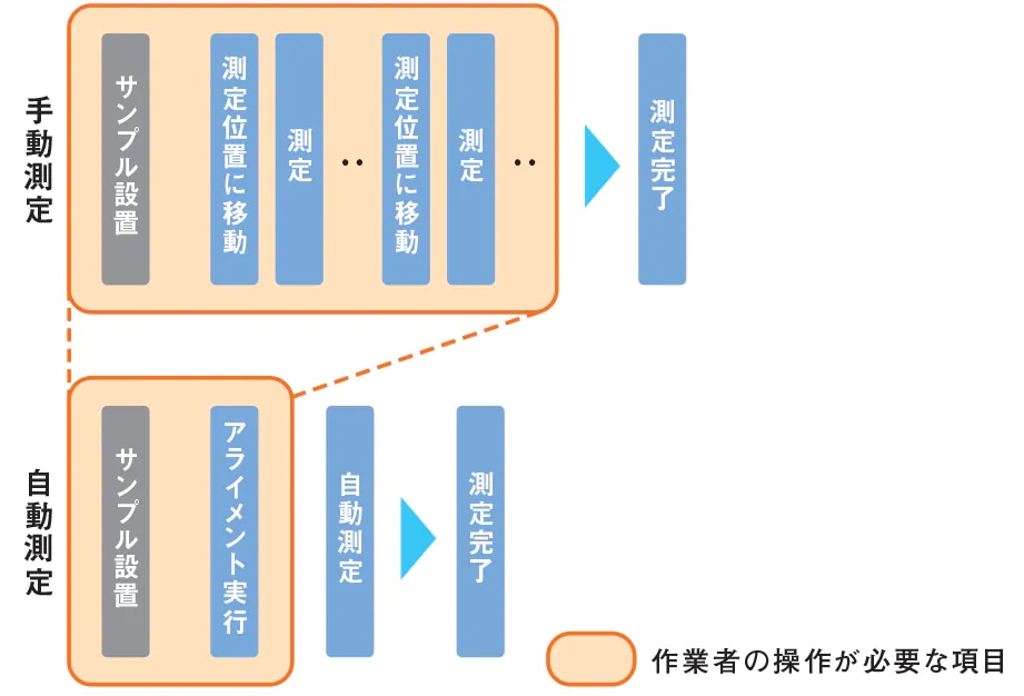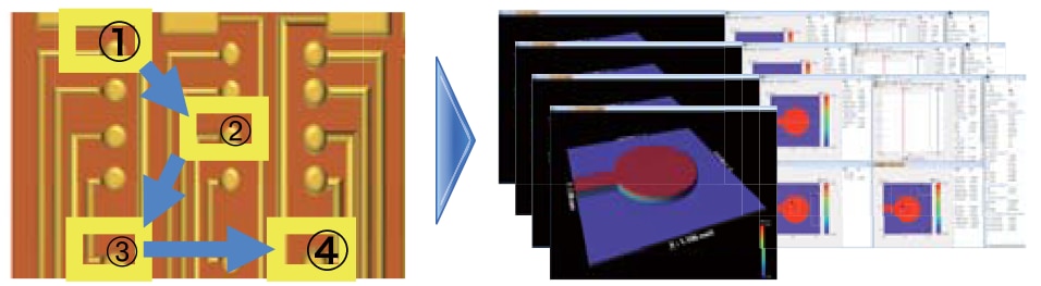 指定座標を設定することで、連続多点測定が行えます。 データ一括解析と組み合わせることでデータ解析、数値出力まで完全自動実行を実現しました。