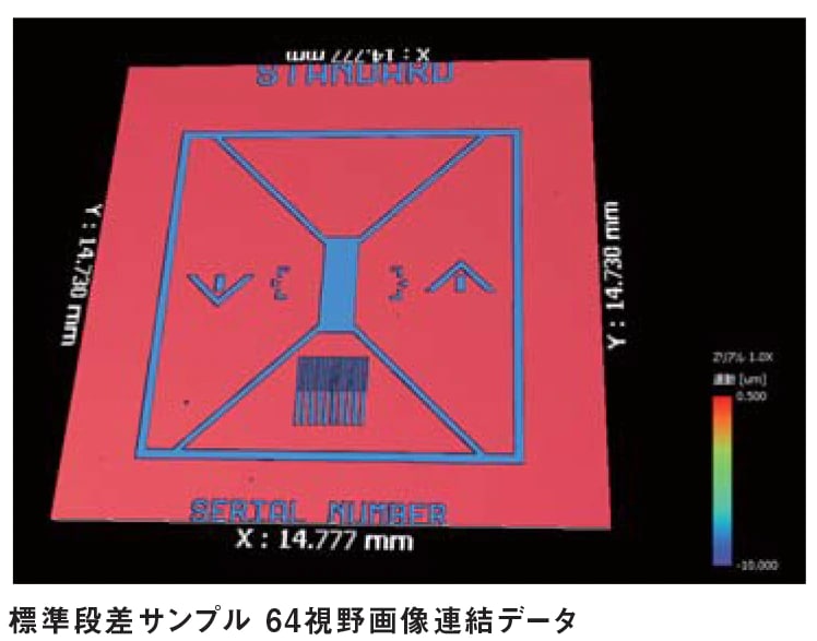 画像連結による複数視野測定の場合、画像の繋ぎ合わせ精度を高めるため、ステージの位置決めは重要です。VS1800では、高精度ステージの搭載により、精度の高いスティッチング画像が生成でき、画像連結においても高いZ分解能を維持することが可能です。