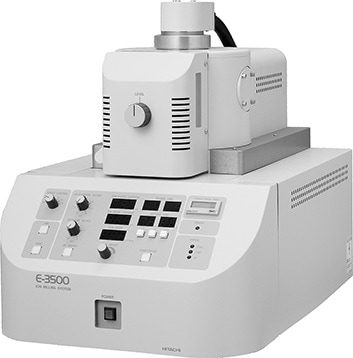 断面イオンミリング装置として発売(2005年)。ベアリング式ターボ分子ポンプ採用により排気系を小型化し卓上設置に対応。断面イオンミリング用として、新規開発のカートリッジ式セミ・ペニングイオンガンを実装し、高ミリングレート化を実現(E-3200比)した。このE-3500形から海外発売を開始した(2009年)。