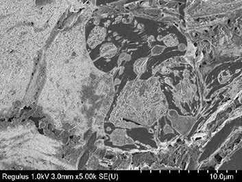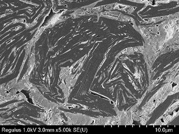 イオンミリング装置とはアルゴンイオンを用いて試料をスパッタする(削る)装置で、主にSEM用試料の内部構造露出や表面を平滑にするための試料加工装置です。機械研磨など、他の断面試料作製法と比べて応力をかけずに試料を加工することができるので、多岐にわたる試料の前処理に活用されています。