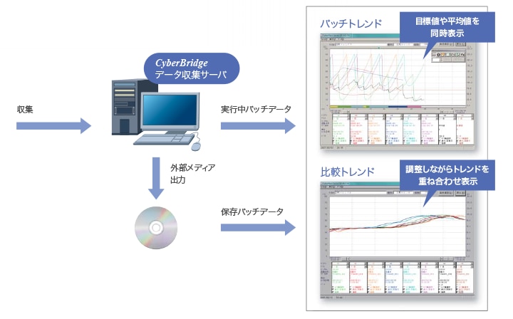 - バッチ単位にプロセスデータを収集し、トレンド表示