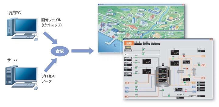 - 汎用ソフトにて作成した画像ファイルから監視画面を構築
