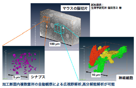 - マルチCut&See機能により、加工断面内複数個所の観察像を連続自動取得することができ、広視野解析と高分解能解析を両立できます。
