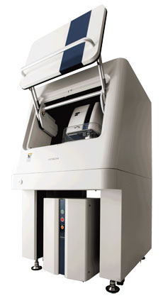 走査型プローブ顕微鏡システム「AFM5500M」は、ナノレベルでサンプル表面の立体形状観察と物性マッピングを同時に行うことができる装置である。広域フラットスキャナによりXY200 µmの広域走査に加えて歪みを改善した直線性の高い計測を実現する。さらにカンチレバーの装着・交換、光軸調整及び測定パラメータの調整等を自動化することでオペレーターの負担を大幅に軽減した。また、走査電子顕微鏡(SEM)との異種装置間で試料の同一場所を簡単に測定できるAFM & SEMリンケージシステムを搭載する。