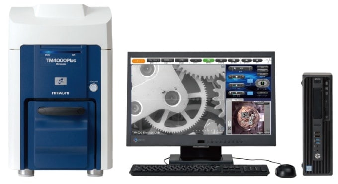 走査電子顕微鏡(SEM)は、物質表面の微細構造を観察する装置として、バイオテクノロジー分野や材料分野をはじめ、あらゆる産業分野において、幅広く利用されています。TM4000形卓上顕微鏡は、TM3000シリーズに引き続き熱電子銃型低真空SEMとして、装置の小型化と、操作の簡易化を追求することで、電子顕微鏡に触れることが初めての方でも、手軽にご使用いただけます。また、卓上顕微鏡は製造・品質管理分野で非常に多くの反響をいただいているため、TM4000シリーズではお客様のルーチン作業を支援する装置をコンセプトに設計されております。真空引き時間中に真空試料室内に配置されたカメラで撮影した画像を基にサンプルをナビゲートし、ワンクリックで観察箇所への移動を可能なSEM-MAP機能と、観察が終わった後に観察画像レポートを生成してくれるレポート作成ソフト(標準機能)などが新たに付加されました。また、TM3000シリーズと同様にTM4000シリーズでは半導体型反射電子検出器を標準搭載し、TM4000PLUSでは高感度低真空二次電子検出器(UVD)が搭載されます。TM4000シリーズは卓上顕微鏡の世界を拡げ、さらなるお客様のイノベーション創出をお手伝いします。