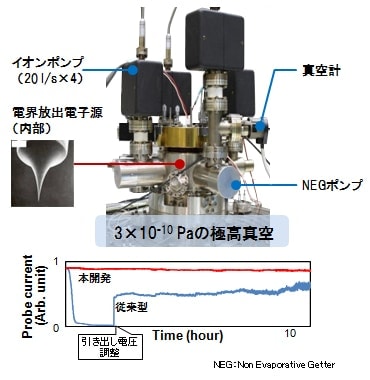 今回の開発では極高真空化することで電子ビーム引き出し直後から安定して使用できるようになった。