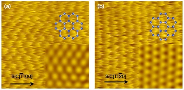 図6 グラフェン摩擦像の走査方位依存性(a)SiC[-1100]、(b)SiC[11-20]