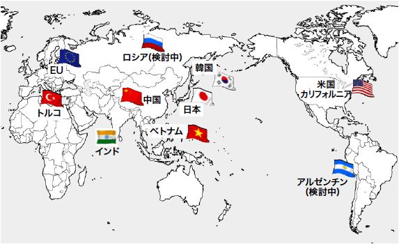 製品含有化学物質規制は、EUをはじめとして日本、中国、韓国、米国カルフォルニアなど多くの国や地域が導入している(図1)。同時に、製品を製造する側から使用する立場へ向けた情報提供のシステムも整備されてきた。欧州におけるREACH 規則での情報展開や日本を中心としたJAMP(アーティクルマネジメント推進協議会)の取り組みもこの一環である。また、客観的な評価を行う分析法の整備もきわめて重要であり、継続した検討が行われている。