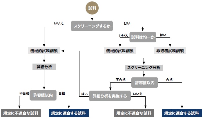 測定は、表3に示すとおり、スクリーニングと詳細分析に分けられる27)。常に効率向上を求められる生産工程の中で、比較的簡易なスクリーニング分析の活用は、重要な意味を持っており、生産性をできるだけ損なうことなく、適切な検査を行うために、有効な手段となり得る。