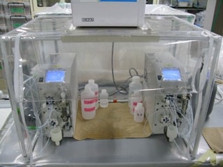 図3 クリーンフード内に設置された外洋水中微量元素濃縮分離用のSPE-100