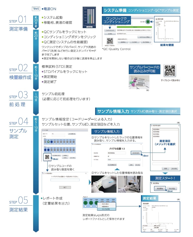 これからの医療現場に必要なHPLC 法には、上記背景を加味すると以下の条件が求められるだろう。1)分析初心者でも扱える簡便なシステムであること、2)(質量分析計のような)高額な装置や(抗体等の)特殊な試薬は用いないこと、3)前処 理と分析条件はほぼ同一で、かつ多品目を測定できること、4)迅速性に優れたシステムであること、である。