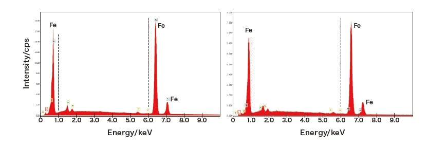 図3 汎用EDS検出器(従来型)で900℃計測時のFeスペクトル位置の変化