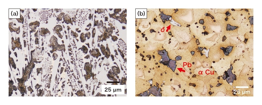 図2 代表的な光学顕微鏡像,( a)鋳鉄および(b)青銅領域