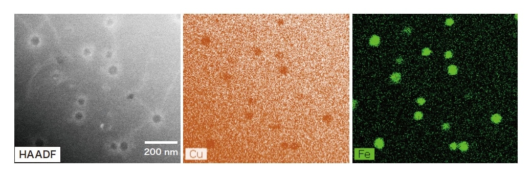 図8 αCu の⾼⾓度環状暗視野(HAADF)像と元素分布像