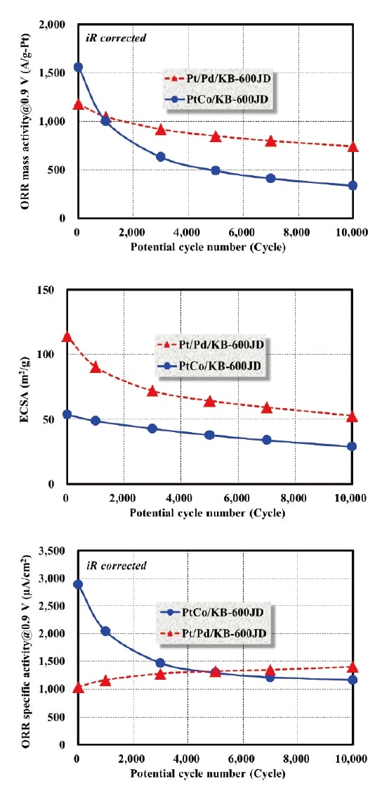 図4 ADTによるPtCo/KB-600JDとPt/Pd/KB-600JD触媒の電気化学特性変化