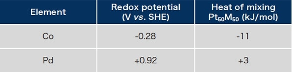 表1 CoとPtの酸化還元電位およびPtとの混合熱