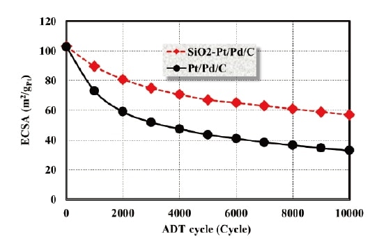 図6 ADTによるPt/Pd/C触媒のECSA変化