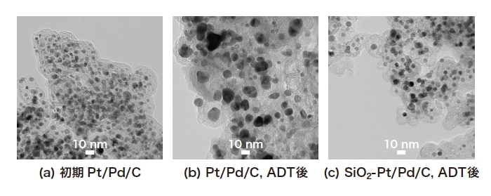 図7 ADT前後のPt/Pd/C触媒のTEM像