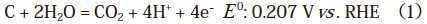炭素は式(1)で示すように、熱力学的には約0.2 V vs. RHE の低電位で酸化してCO2化する。速度論的には炭素の酸化反応は1.0 V vs. RHE 以上の電位で加速するため、PEFC のカソード環境ではPt の触媒作用も加わって炭素担体材料が酸化腐食する。炭素担体が酸化してCO2化すると担持されていたPt 触媒が宙に浮いた状態になり、炭素担体からORR に必要な電子供給が絶たれてORR に寄与することができなくなる。このため、高電位で安定かつ電子伝導性を有するマグネリ相Ti4O7とSnO2金属酸化物が炭素担体の弱点を克服する担体材料として検討されている26-31)。