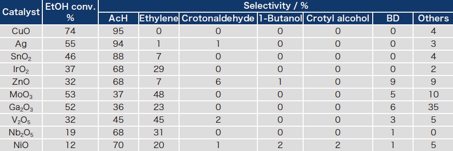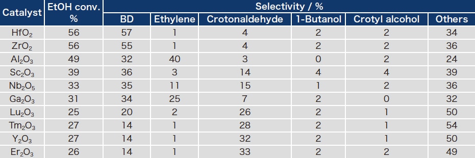 表 1 ハイスループットシステムで調製した触媒のEtOH反応
