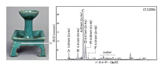 図17 国宝「緑釉四方燭台」の蛍光X線測定
