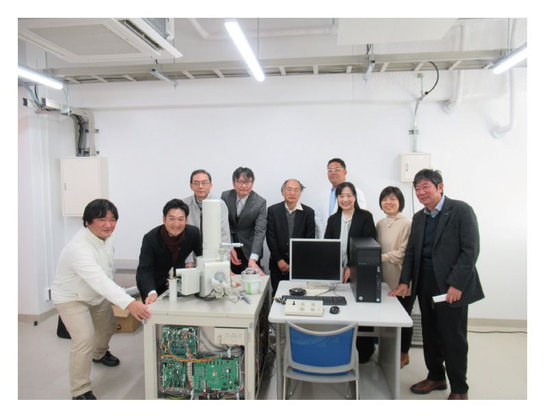 現在は、日本電子株式会社、株式会社島津製作所のご協力により、SEMとMALDI-TOFMSの2台で実施しています。図7は中古機器バラシキャラバン実施後の集合写真です。参加者の表情を見ると大変充実したプログラムであったことがよくわかるかと思います。この際にバラした装置は、日本電子社製の10年以上前のSEMでした。このような、大学等の中古機器は様々な事情により非常に扱いが難しくなっています。中古機器バラシキャラバンのような形で教材として活用することを進めながら、産学協働で技術者を育成していくことができれば、我が国の技術者の高度化がさらに促進されるのではないでしょうか。今後も、さらに多くの企業の皆様からのご提案、中古機器のご提供等も合わせて、プログラム開発を推進し、このような人材育成を通じた新たな産学協働の拠点化を実現していくことができれば、我が国の科学技術・イノベーション力の向上に向けたエコシステムを構築することができると確信しております。東工大にお立ち寄りの際には、ぜひTCカレッジバラシPLAZAにお立ち寄りください。