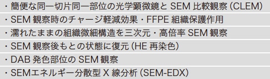 表1 FFPE切片におけるナノスーツ-SEM法で期待される技術的効果