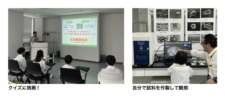小学生を対象にした当所のイベント「夏休み子ども科学体験イベント」が2024年8月5日に開催された。今回はミクロの世界を体験してもらいたいとの願いから、日立ハイテクの協力を得て実施した。光学顕微鏡、走査型電子顕微鏡(SEM)、電子顕微鏡クイズの3つのカテゴリーを体験してもらった(図4)。卵の殻、塩やハーブなど身近なものから蟻、蝶の鱗粉などを試料とし、参加者に試料の選択と作製をしてもらい、SEMのオペレーションも体験してもらった。参加した子どもたちは試料の作製やクイズに楽しそうに取り組んでいた。