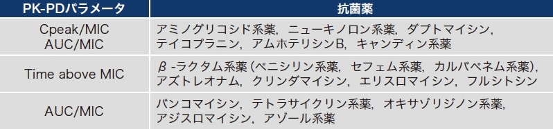 表3 各種抗菌薬のPK/PDパラメータ