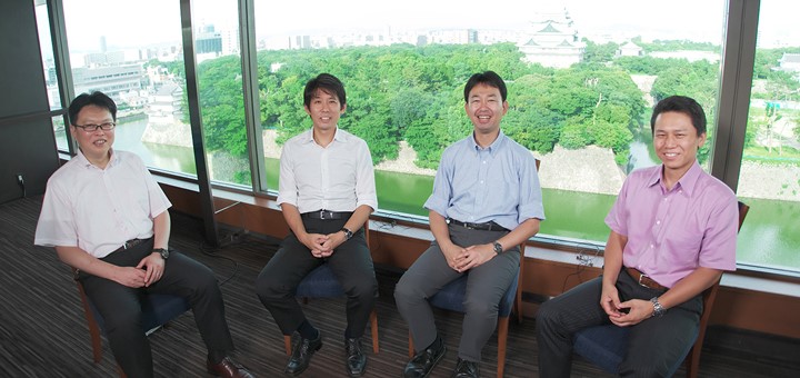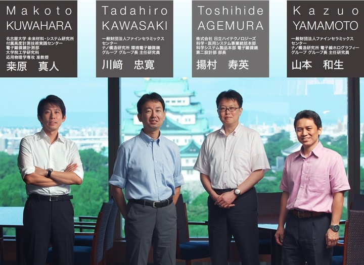 名古屋大学において、スピン偏極パルス透過電子顕微鏡の開発を手がける桒原真人氏、ファインセラミックスセンター(JFCC)で収差補正器の開発に従事する川﨑忠寛氏、同じくJFCCにて電子線ホログラフィーの研究に取り組む山本和生氏。