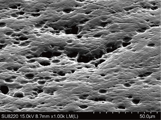 60°傾斜させて観察したアルマイト表面の凹凸形態