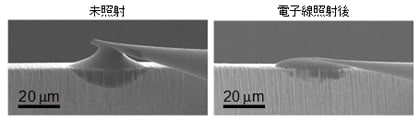 図3 電子線照射後及び未照射のイオン液体におけるプローブ接触後のSEM像