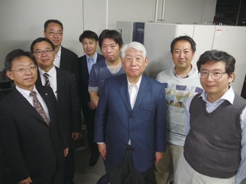 左から小瀬洋一、多持隆一郎、東淳三、丹波裕介(以上日立ハイテク)、臼倉英治、臼倉治郎、成田哲郎、松本友治(以上名古屋大学)の各氏。