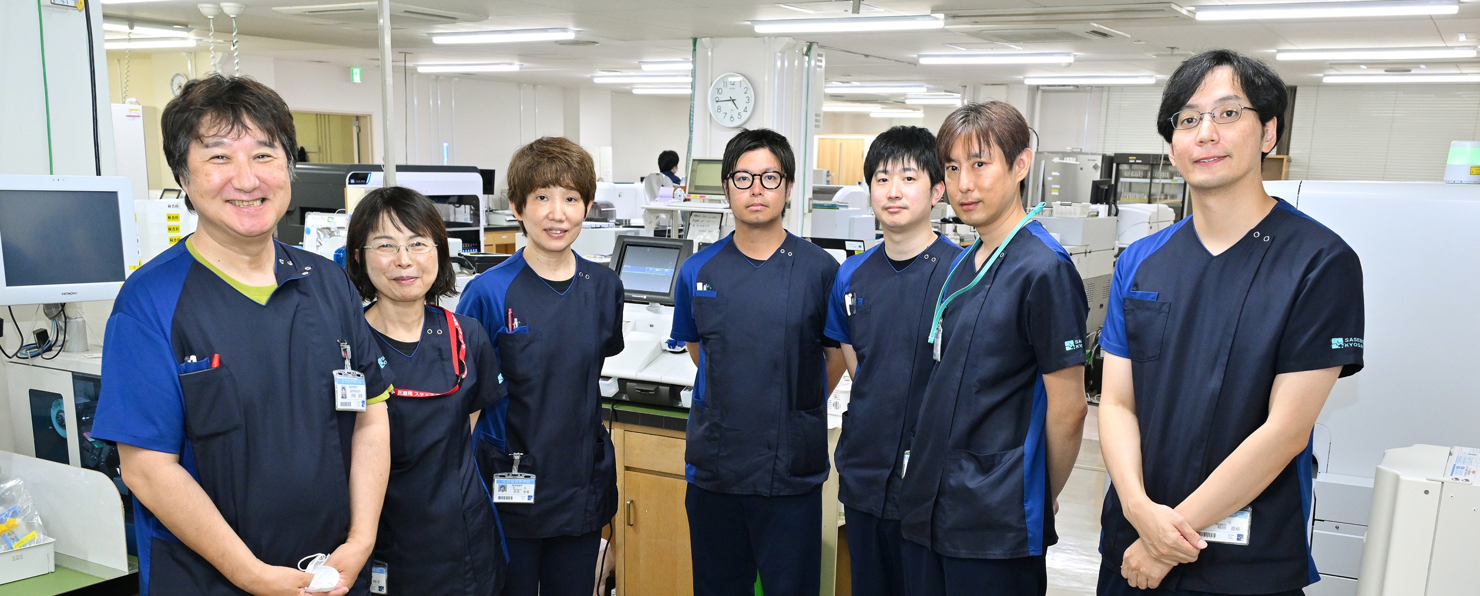 稲田 当院の検査室は、患者さんから採取した検体を分析する「検体検査」と、心電図や超音波検査などの「生理機能検査」の二つに分かれており、私たちが所属する検査室では前者を担当しています。一日の流れとしては、まず分析装置の精度管理を行い、入院患者さんの検体が届いたら一つひとつ分析し、外来開始前までに結果を出します。その後、外来の患者さんが午前中から来院されるため、再び検体を分析し、最後に再度精度管理を行って翌日につなげる——これが主な流れです。