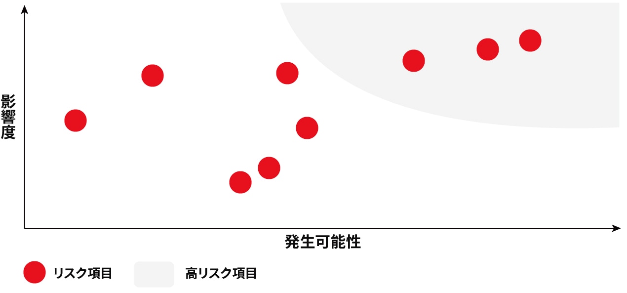 日立グループでは、COSO-ERMやISO 31000などの国際的なリスク管理フレームワークを参照し、グループとしての重要リスクの選定と対応方針の策定を行い、社内外の事業環境の変化に合わせて更新しています。 グループ全体で網羅的・効率的にリスクマネジメントを実施するため、グループリスクマネジメントにかかる社内規程において、グループ共通のリスク項目、リスクの評価方法等が定められています。リスクの評価は、各リスク項目に対して、発生時の影響度と発生可能性を評価し、リスクヒートマップを作成する方法により行います。特定・評価されたリスクについて、リスク対応策を検討の上、実施します。その有効性を定期的にモニタリングし、必要に応じて、追加の対応を行うなど、改善策を実施しています。また、「脅威」としてのリスクが顕在化した場合の事業継続マネジメント(BCM*)についても取り組みを推進しています。