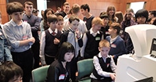 日立ハイテクノロジーズロシア会社は、2017年11月30日 (木)、モスクワの電子顕微鏡関連装置販売店の協力のもと、モスクワMendeleev大学において卓上顕微鏡を用いたイベントを同大学の連携先の一つである地元の初中等教育機関7~9年生(日本の中学生に相当)28名に対して実施しました。