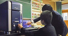 電子顕微鏡を操作する児童