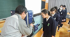 TM3030の紹介を聞いている実験高校の生徒たち