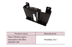 근적외선 영역의 측광영역을 확대하고 싶은 경우에 사용합니다. 근적외선 영역의 측광영역을 확대한 측정을 실시하기 위해서는 레퍼런스 측 감광 필터 홀더(2J3-0120) 외에 아래 표에 나타낸 THORLABS사의 근적외선 지역 흡수형 ND 필터 NENIR210B가 필요합니다