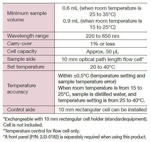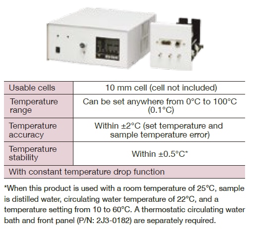 단백질이나 핵산의 융해를 측정할 때 시료온도와 연속적으로 변화시켰을 때의 흡광도 변화를 측정할 수 있습니다. 전자 냉열식이므로 급열, 급랭 가능합니다. 등온 간격으로 승온 강온이 가능하며, 스터러를 사용하여 셀 내 온도를 균일하게 할 수 있습니다. (온도제어: R, S 같이)