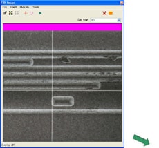 CAD 데이터 상의 좌표 위치를 지정함에 따라 장비의 Stage가 그 좌표와 연동하여 대응하는 위치의 SEM Image(FIB의 경우 SIM Image)를 표시합니다.