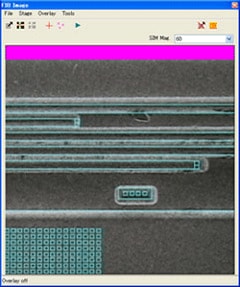 또한 CAD 데이터와 SEM Image를 겹쳐서 표시(Overlay 표시)할 수 있으므로 하층 배선의 위치 확인이 용이하여 해석 작업의 효율을 큰 폭으로 상승시킬 수 있습니다.